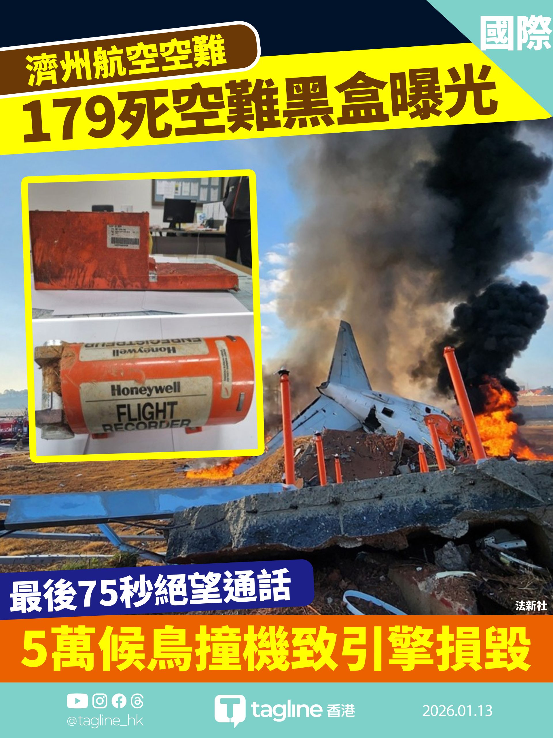 濟州航空179死空難黑盒曝光 最後75秒絕望通話:5萬候鳥撞機致引擎損毀