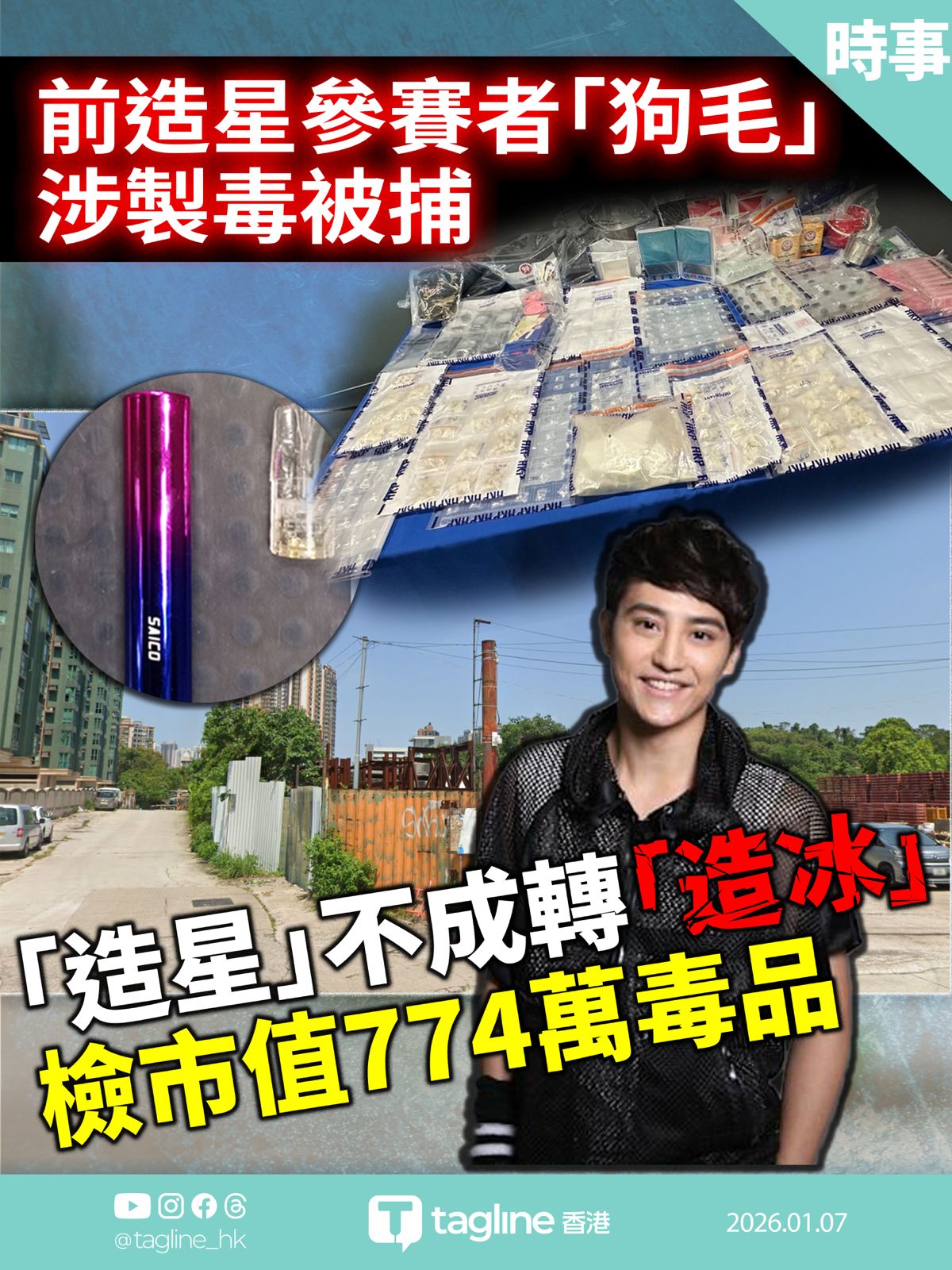 「造星」不成轉「造冰」| 前造星參賽者「狗毛」涉製毒被捕 檢市值774萬毒品 | Tagline HK
