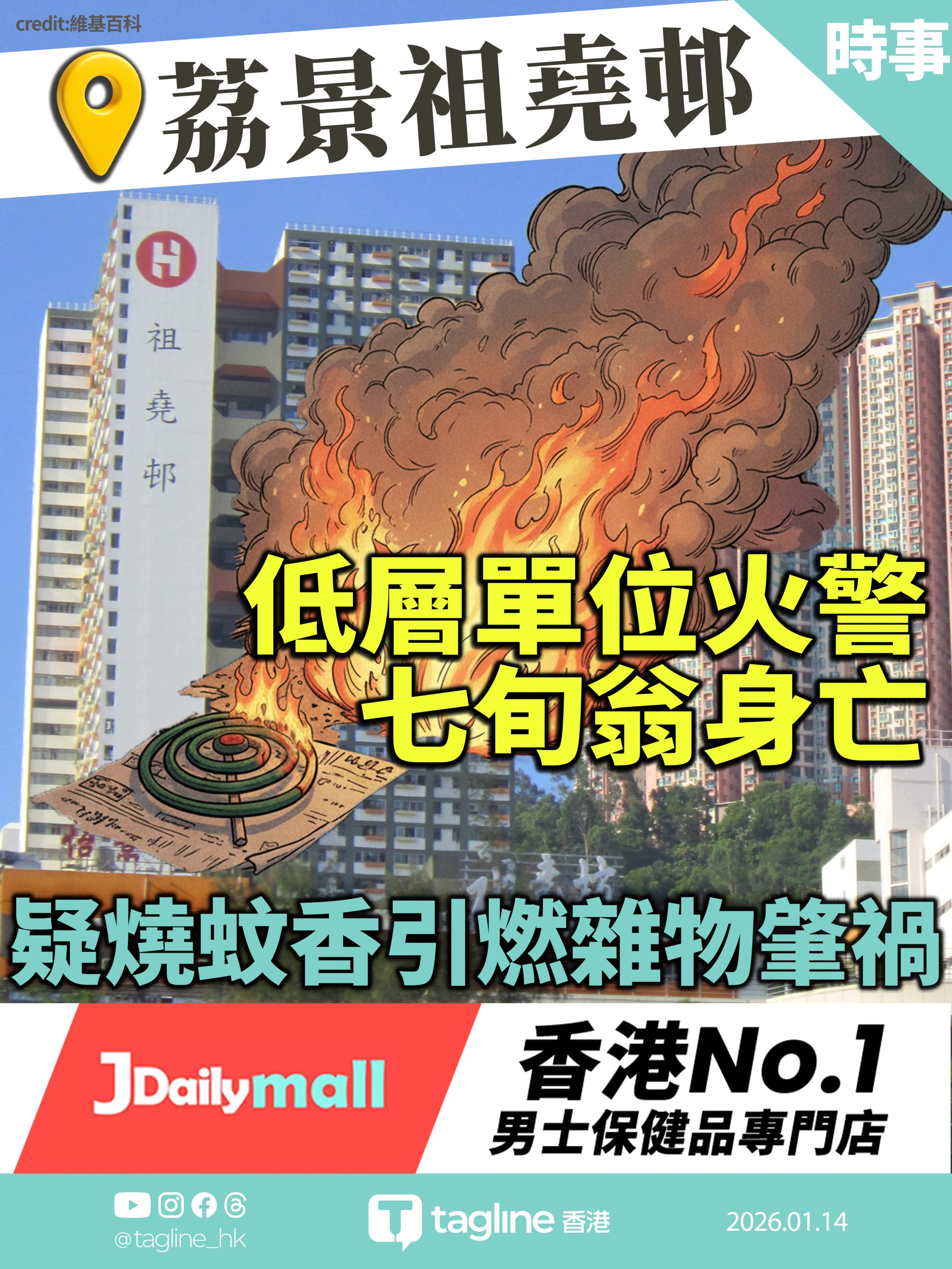 【Jdaily 男士保健品專門店特約】荔景祖堯邨單位火警 七旬翁身亡 疑燒蚊香引燃雜物肇禍