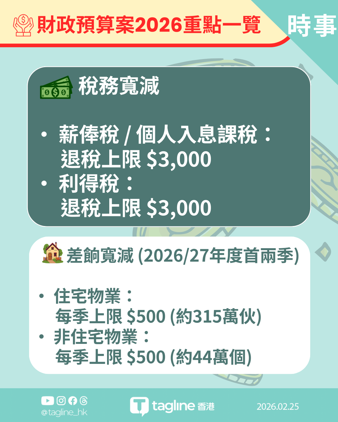 【財政預算案2026】薪俸稅退稅上限$3000 多項免稅額調高 綜援生果金出「雙糧」