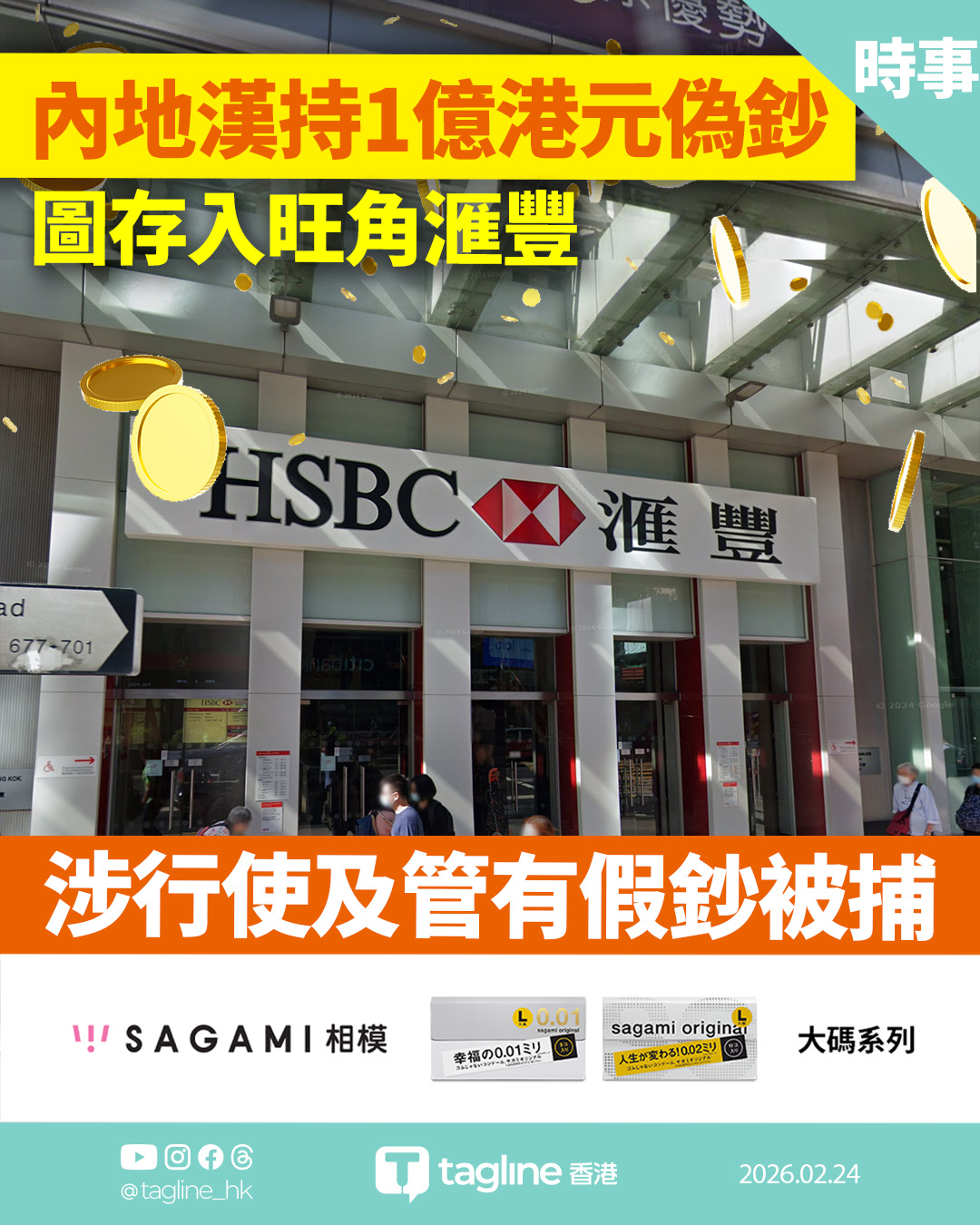 【Sagami安全套特約】內地漢持1億港元偽鈔圖存入旺角滙豐 涉行使及管有假鈔被捕