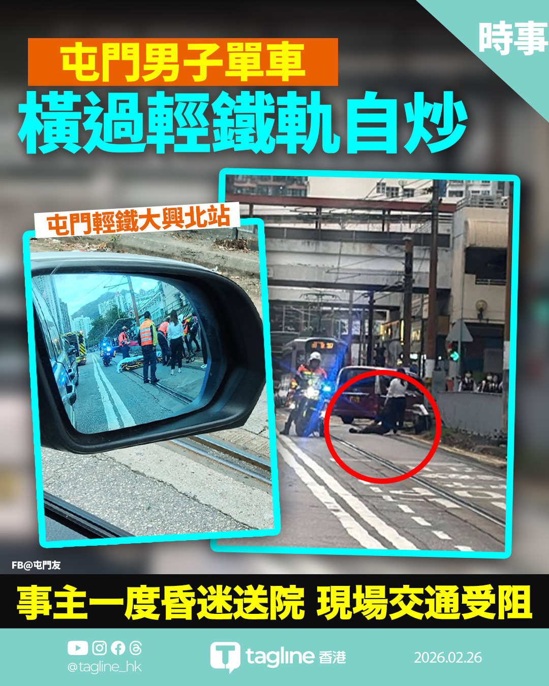 屯門男子單車橫過輕鐵軌自炒 一度昏迷送院 現場交通受阻