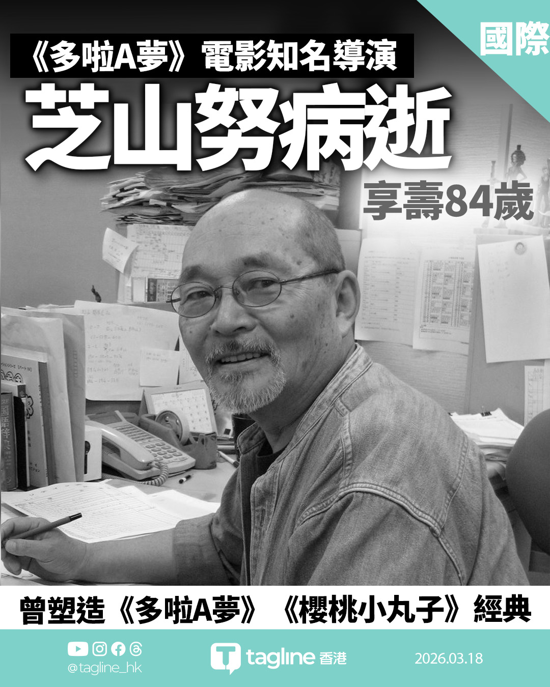 《多啦A夢》電影知名導演芝山努病逝 享壽84歲