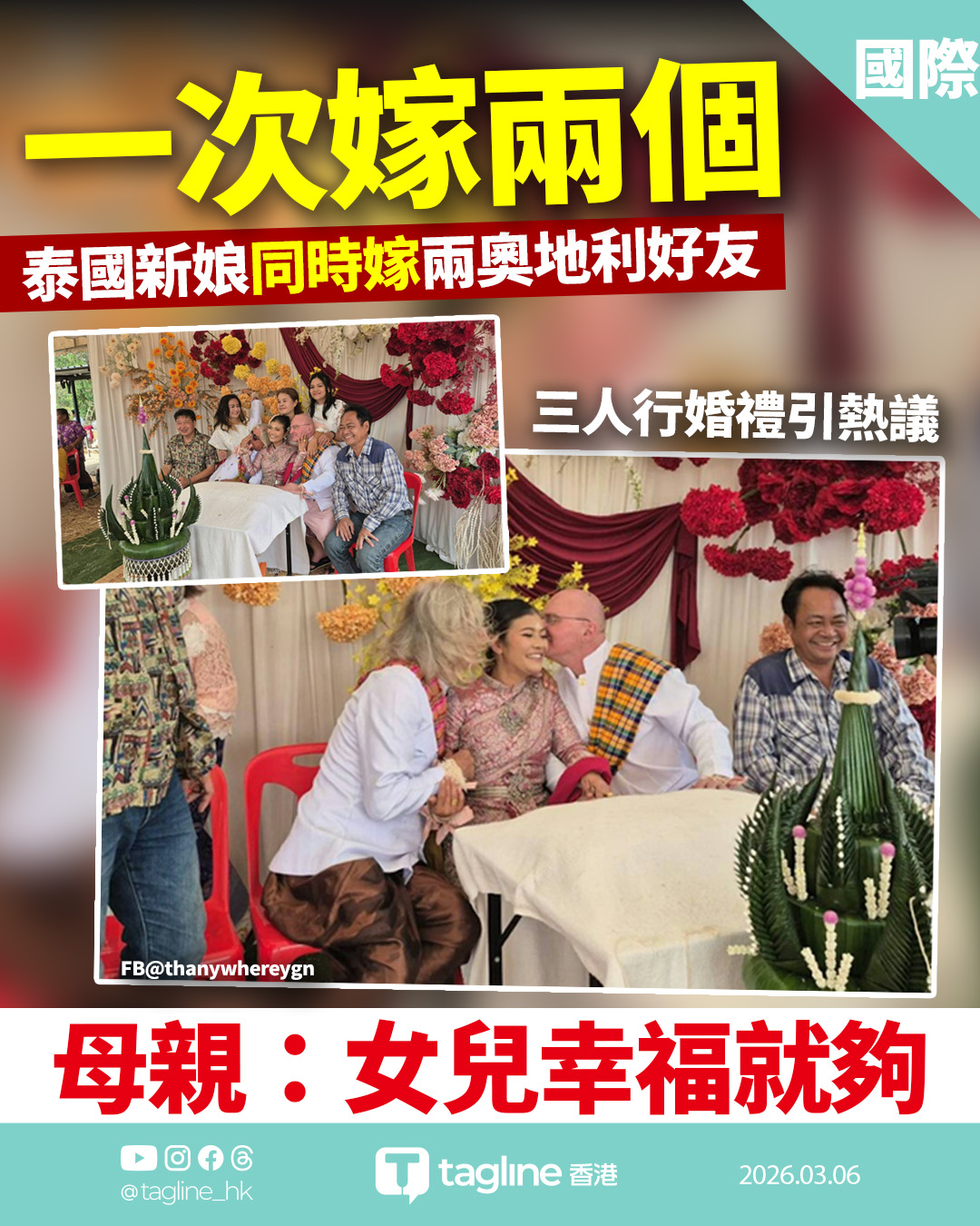 泰國新娘同時嫁兩奧地利好友 三人行婚禮引熱議