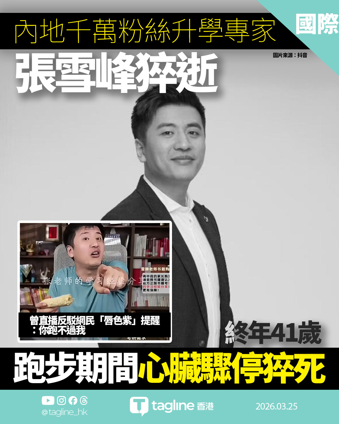 千萬粉絲升學專家張雪峰猝逝 終年41歲 跑步期間心臟驟停不治