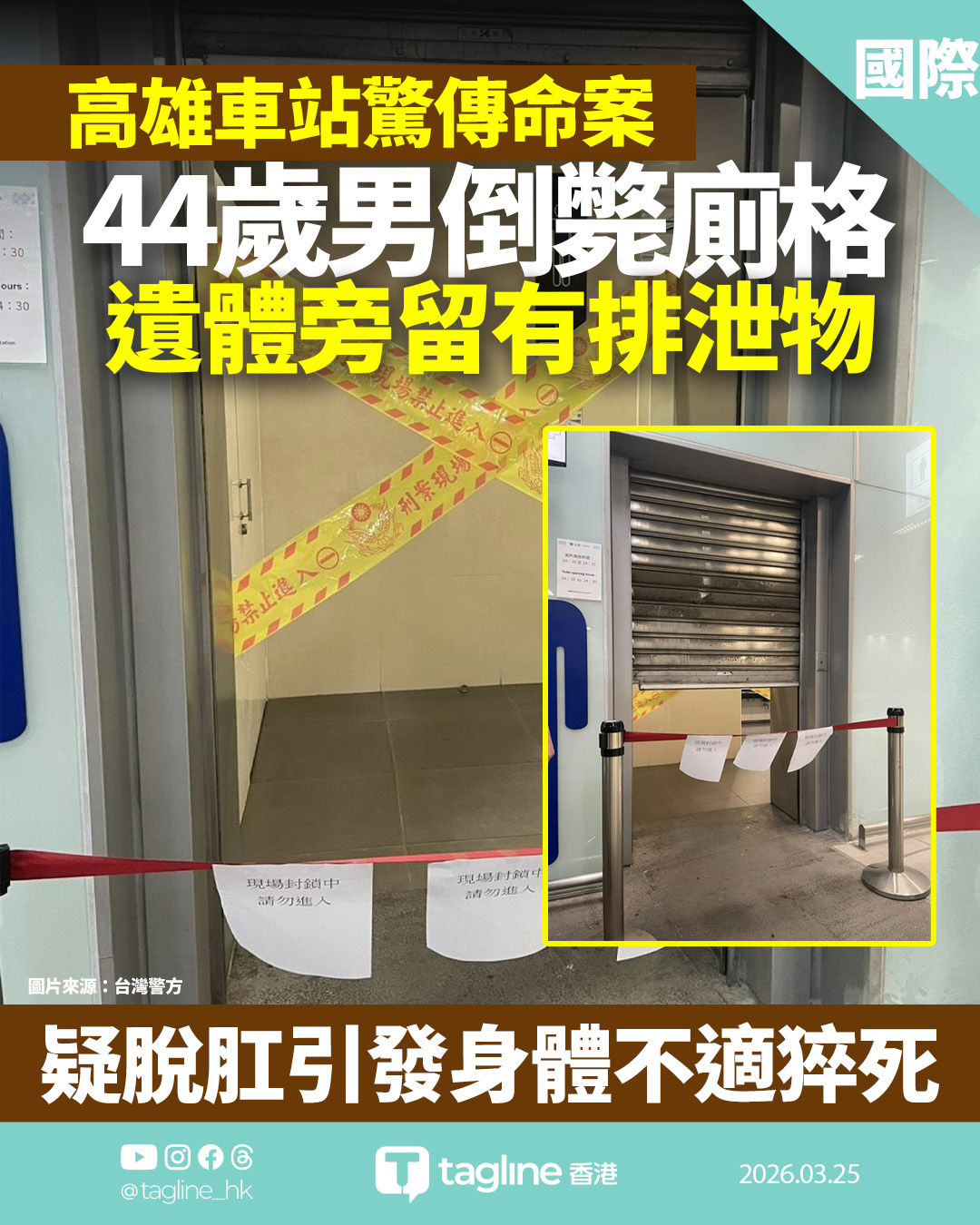 高雄車站驚傳命案 44歲男倒斃廁格 疑脫肛引發身體不適猝死