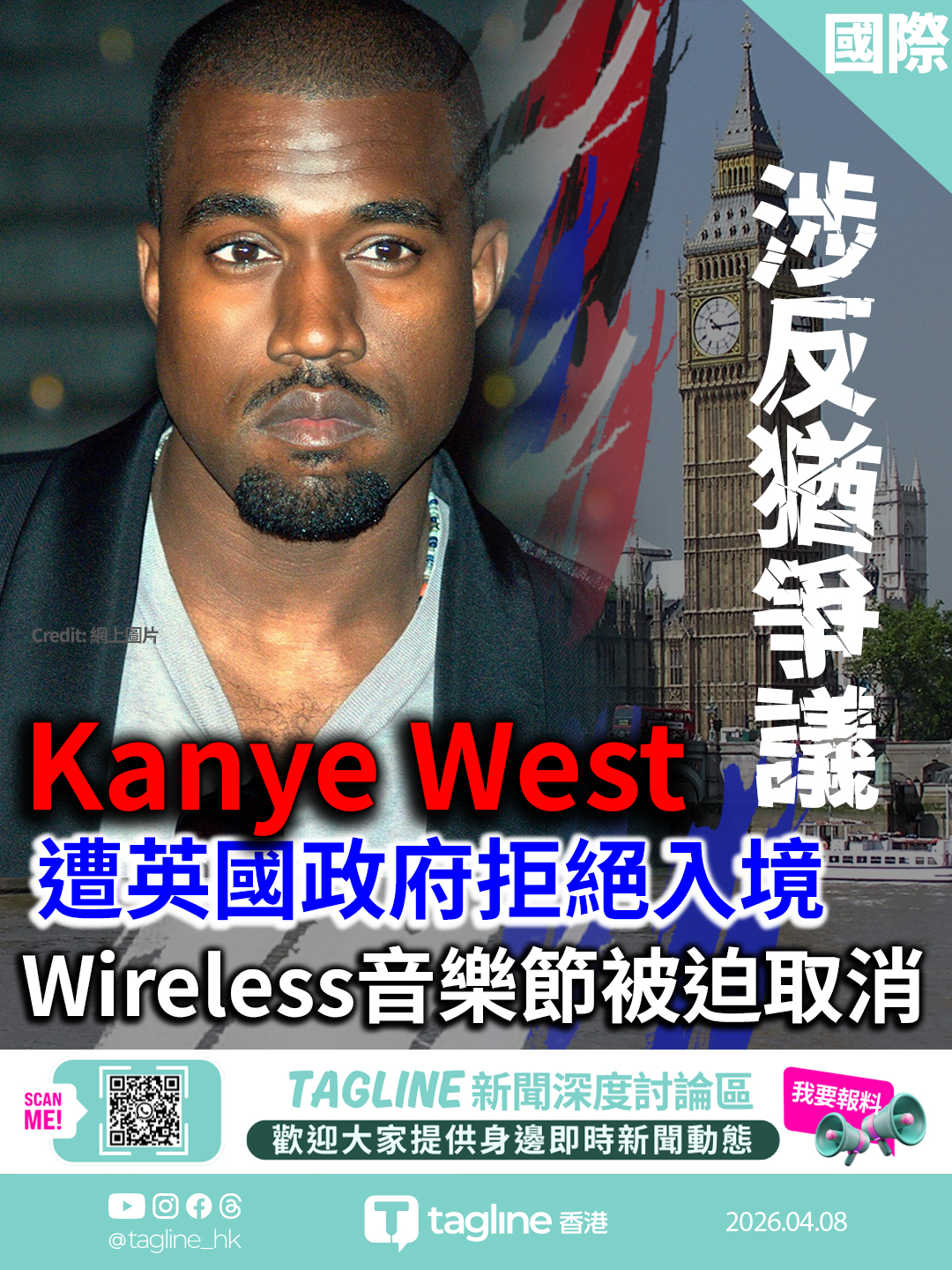 Kanye West涉反猶爭議 遭英國政府拒絕入境 Wireless音樂節被迫取消