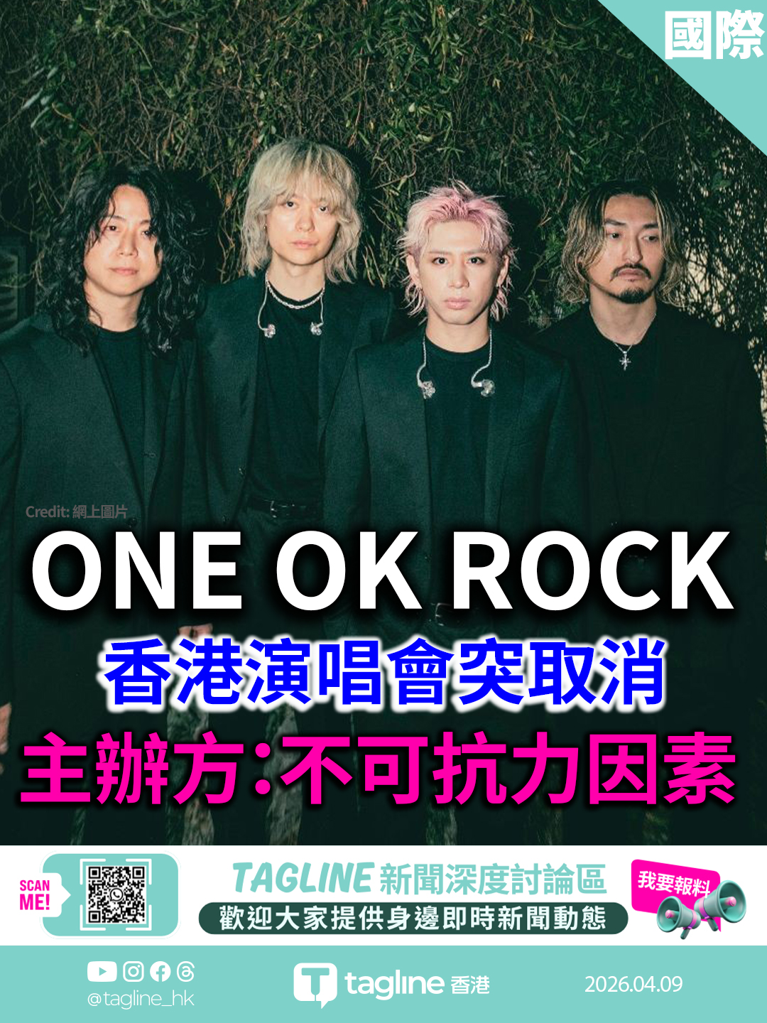 ONE OK ROCK 香港演唱會突取消 主辦方:不可抗力因素