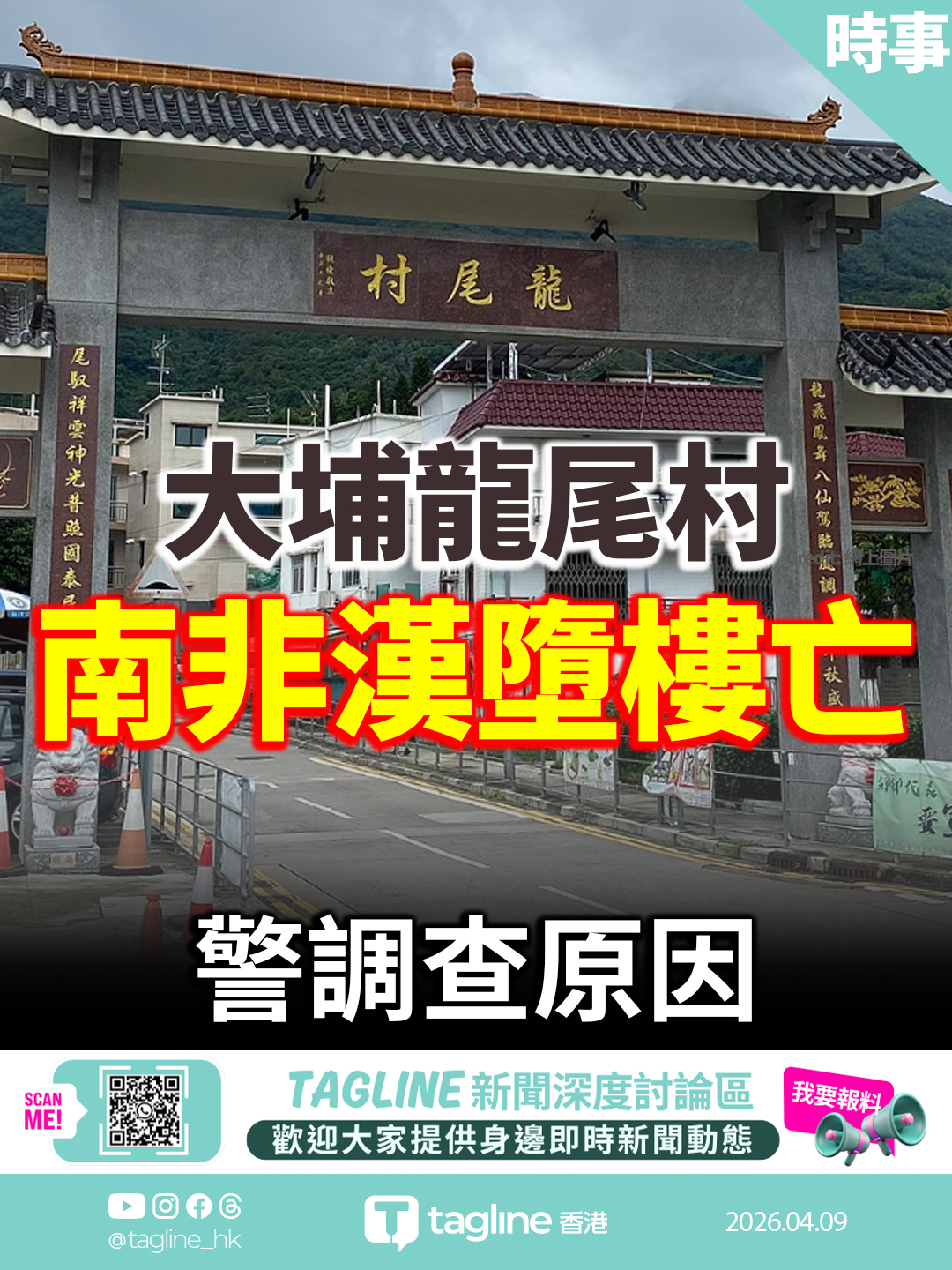 大埔龍尾村南非漢墮樓亡 警調查原因