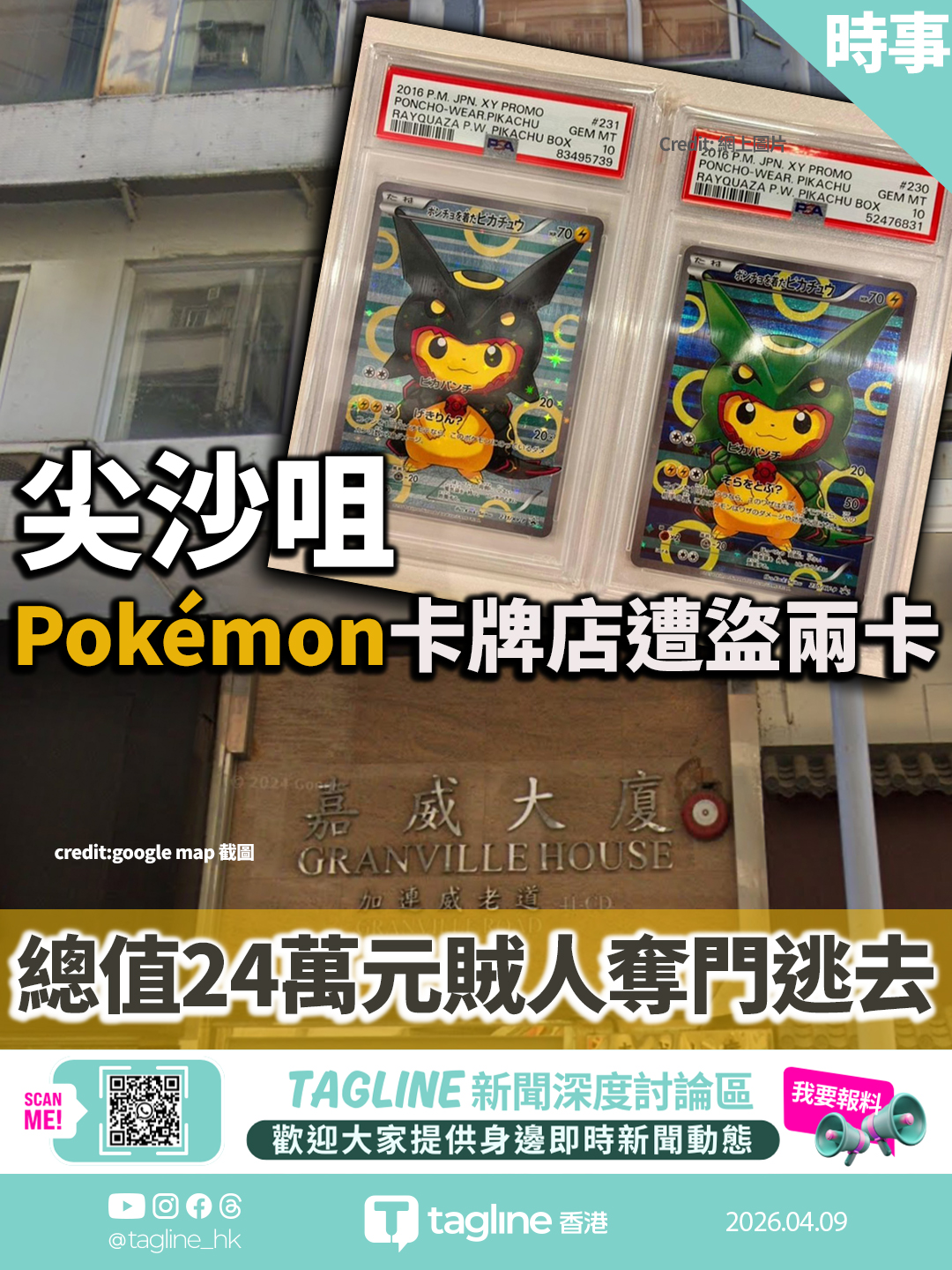 尖沙咀Pokémon卡牌店遭盜兩卡 總值24萬元 賊人奪門逃去