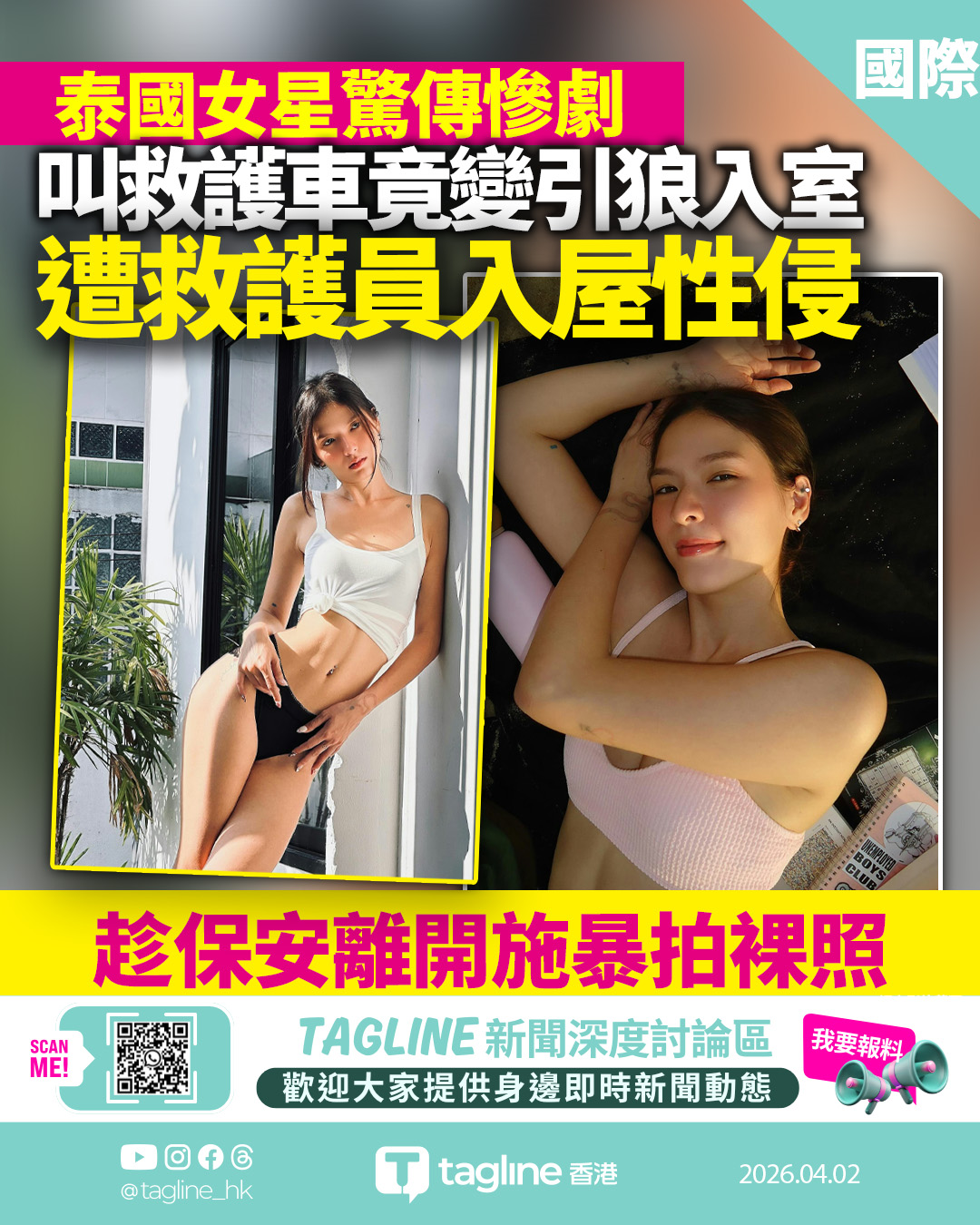 泰女星克莉絲汀遭救護員入屋性侵 趁保安離開施暴拍裸照
