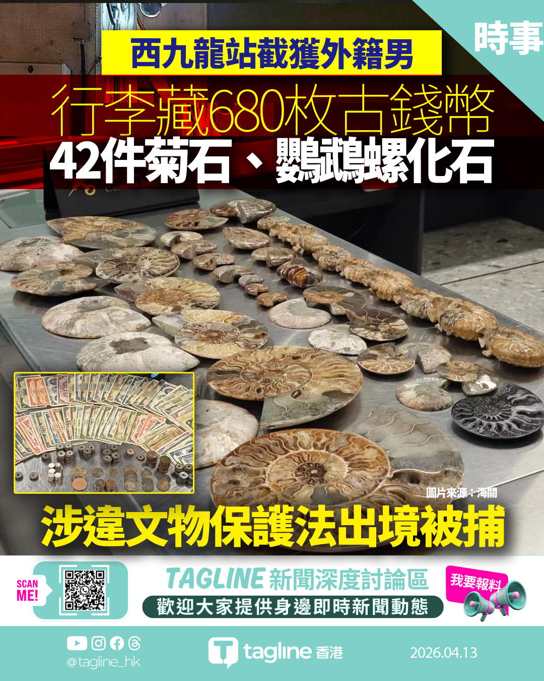 西九龍站截獲外籍男 行李藏680枚古錢幣及化石企圖出境