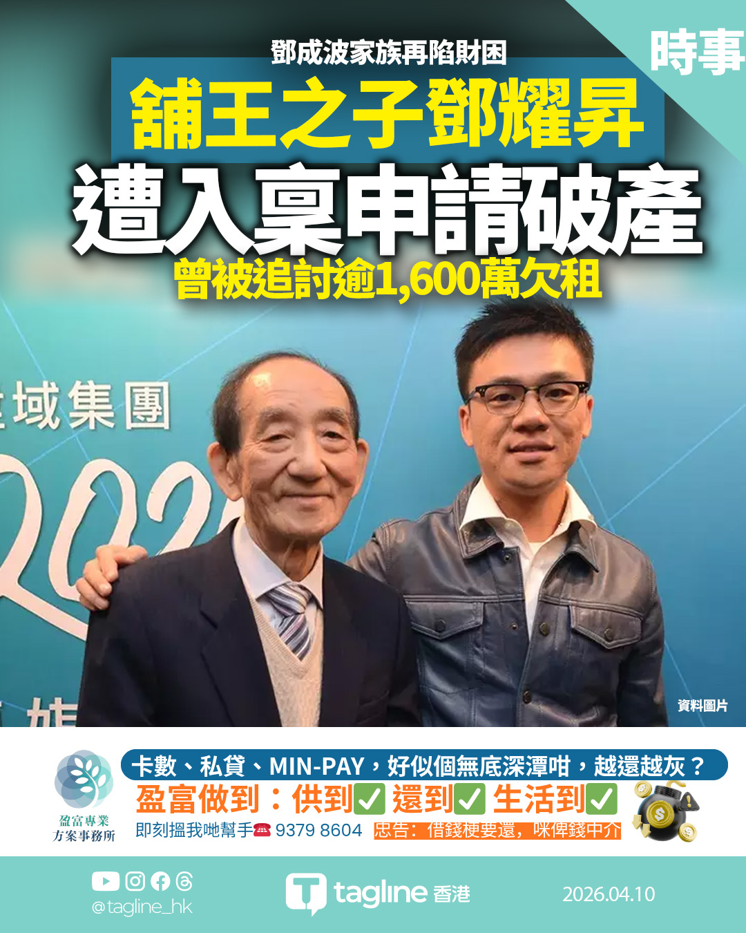 「舖王」鄧成波家族再陷財困 兒子鄧耀昇遭入稟申請破產