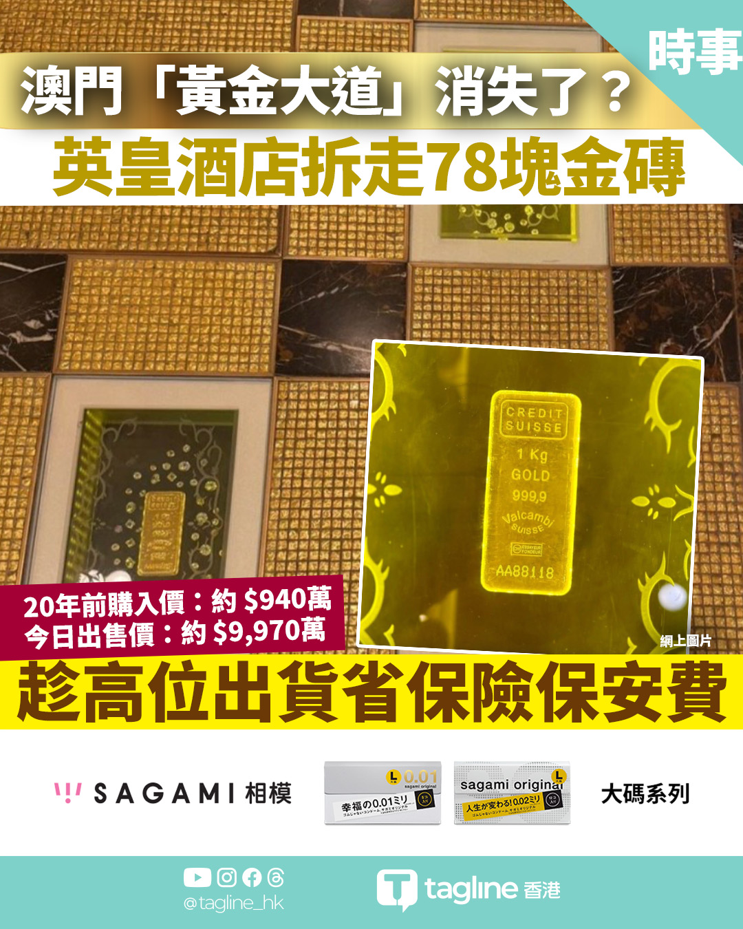 【Sagami安全套特約】金價高企 澳門英皇酒店拆「黃金大道」賣磚 套現近1億帳面賺近10倍