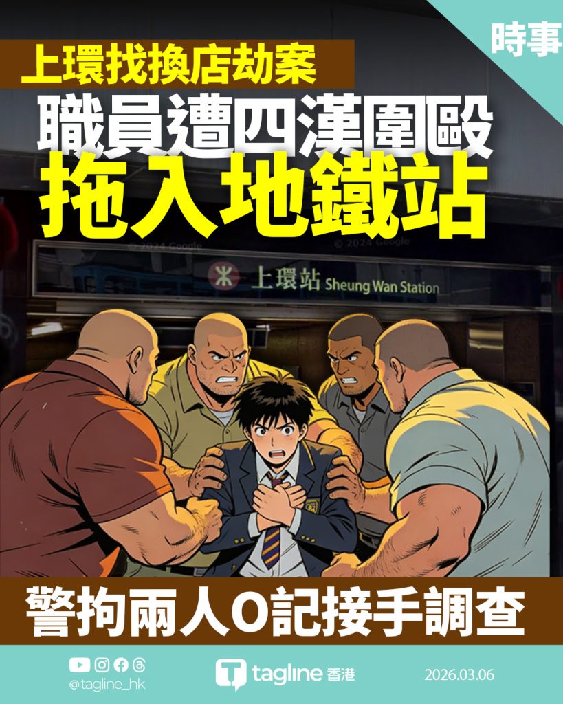 上環找換店劫案 職員遭四漢圍毆拖入地鐵站 警拘兩人O記接手調查