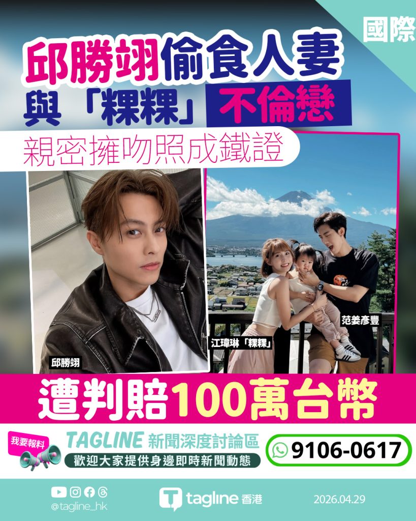 台灣男星「王子」邱勝翊爆出不倫醜聞,捲入與前「啦啦隊女神」粿粿(江瑋琳)的婚外情風波。粿粿前夫范姜彥豐指控,兩人在2025年4月同遊美國後關係越界,怒批對方「親手破壞了我的家庭」,並向兩人連帶索償100萬新台幣(下同)的侵害配偶權賠償。
