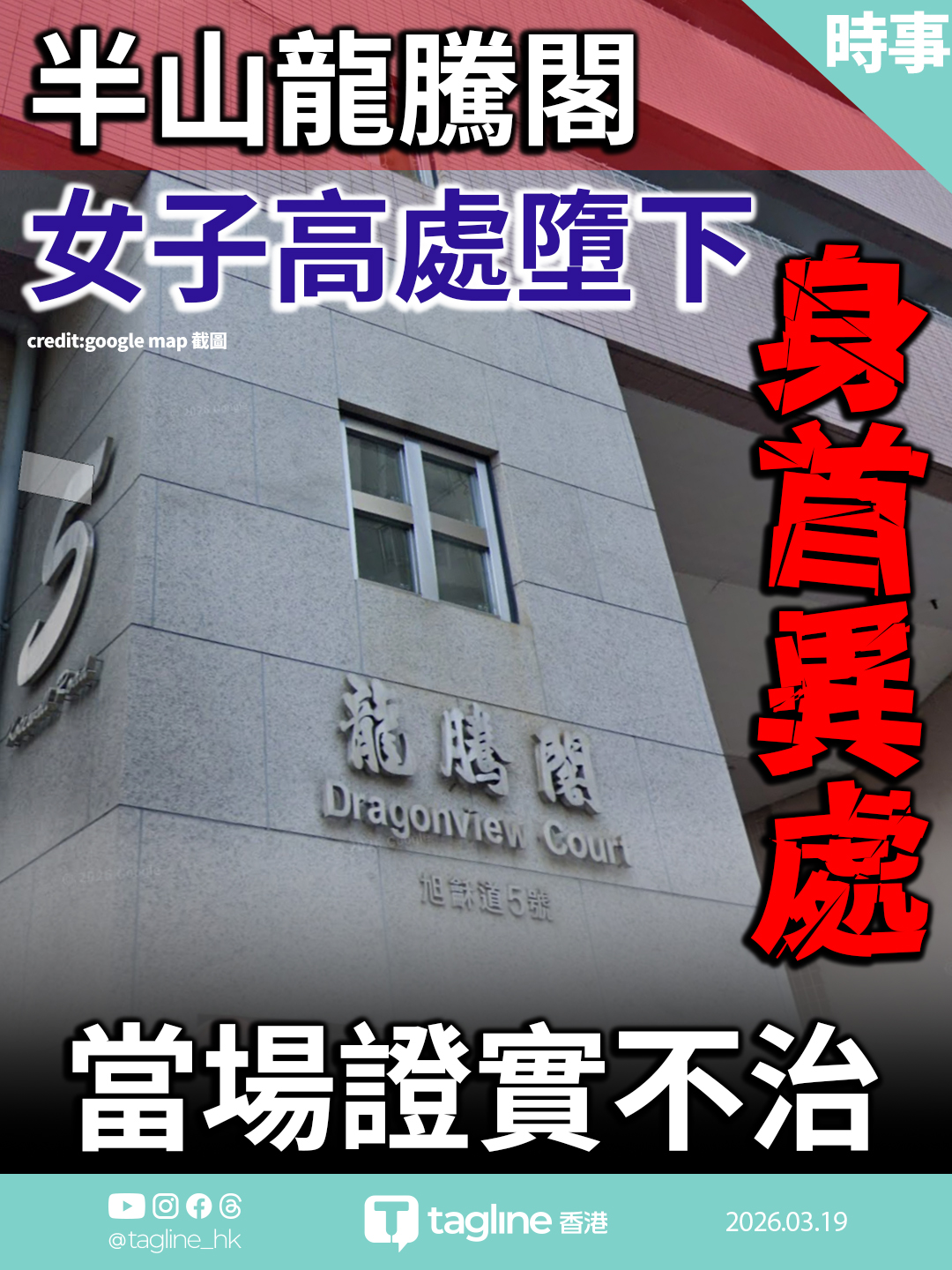 半山旭龢道龍騰閣今早發生墮樓案,一名女子被發現倒臥平台,身首異處,當場證實不治。警方正調查其身份及墮樓原因。