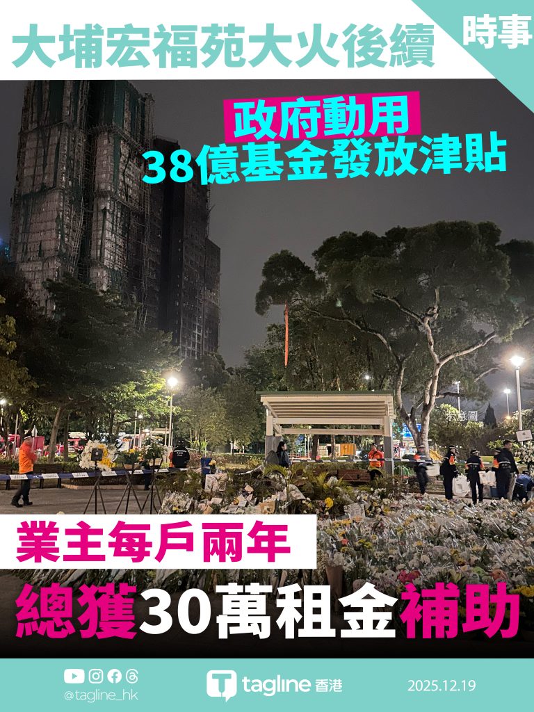 大埔宏福苑大火後續 政府動用 38 億基金發放津貼 業主每戶兩年獲 30 萬租金補助