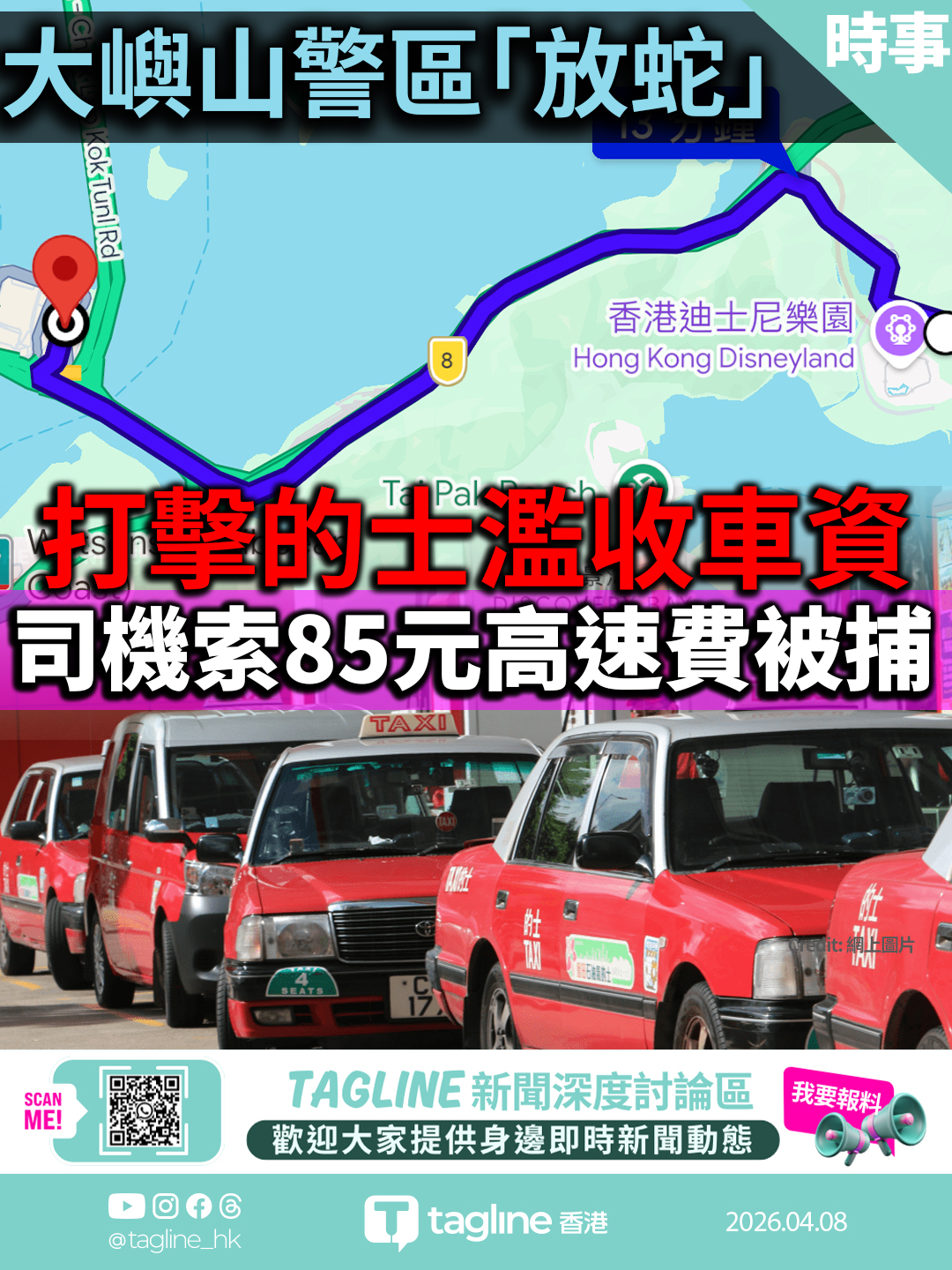 大嶼山警區「放蛇」打擊的士濫收車資 司機索85元高速費被捕