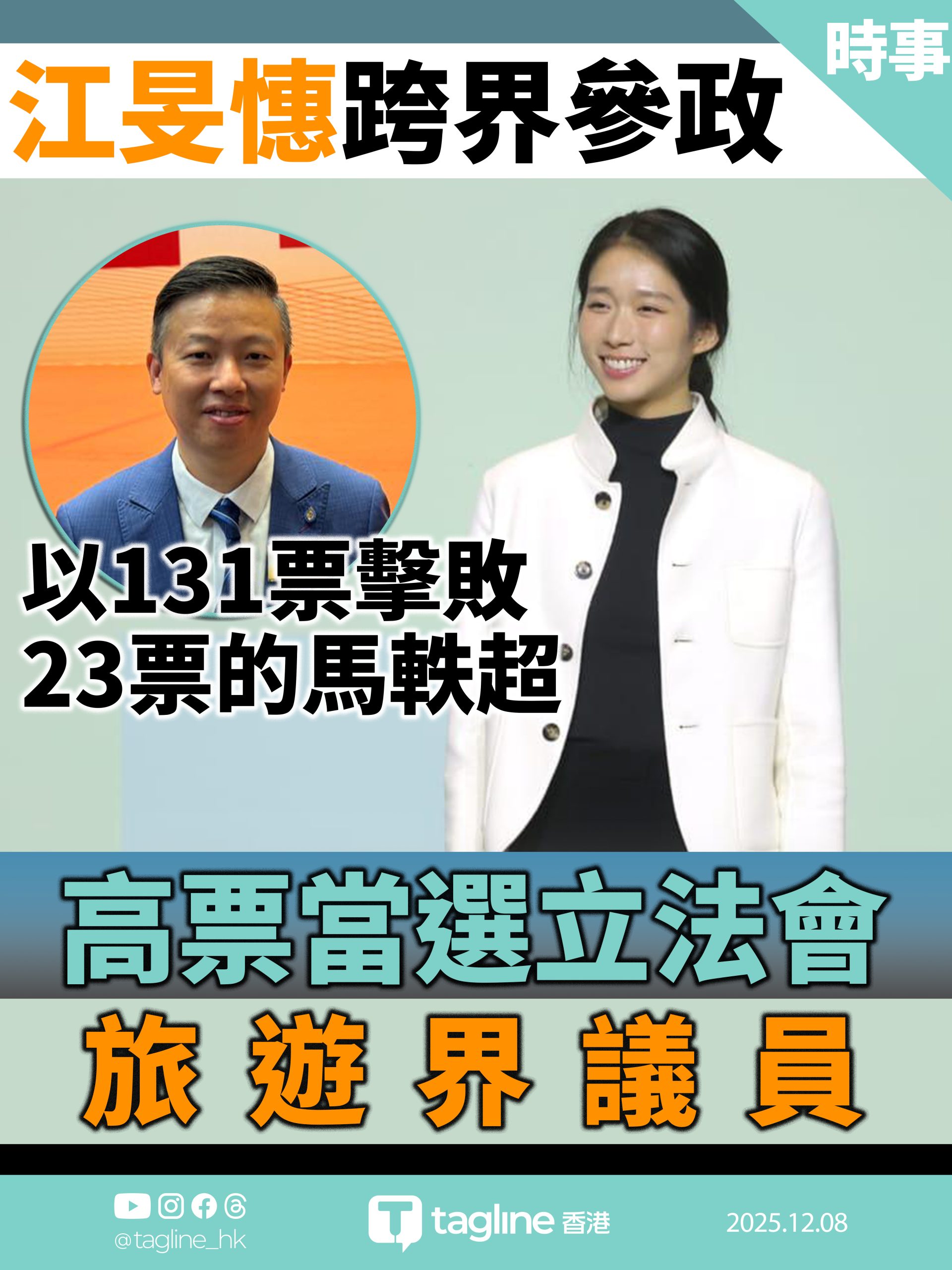 奧運金牌得主江旻憓跨界參政 高票當選立法會旅遊界議員