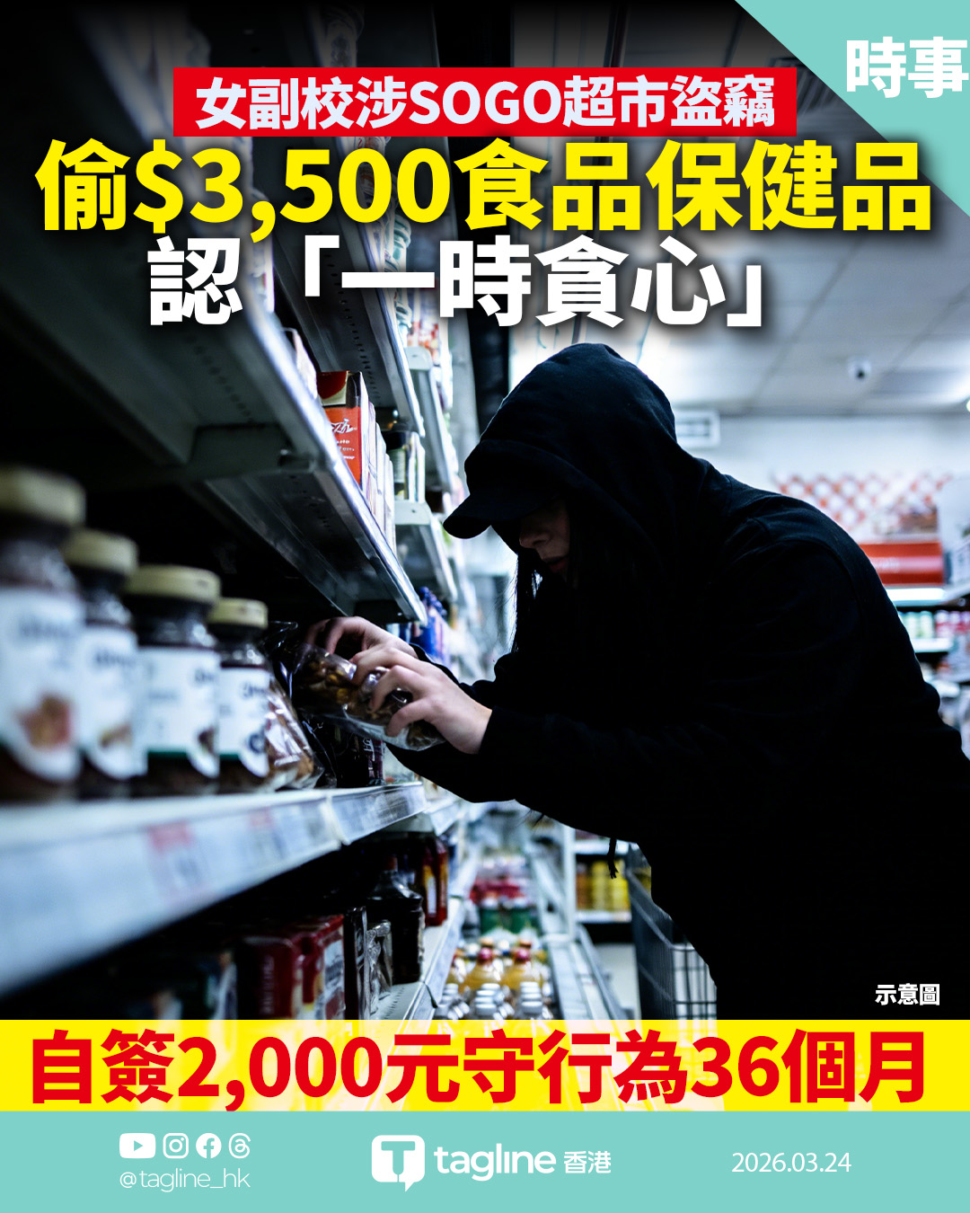 女副校SOGO超市偷逾$3,500貨品 認「一時貪心」 自簽2,000元守行為36個月