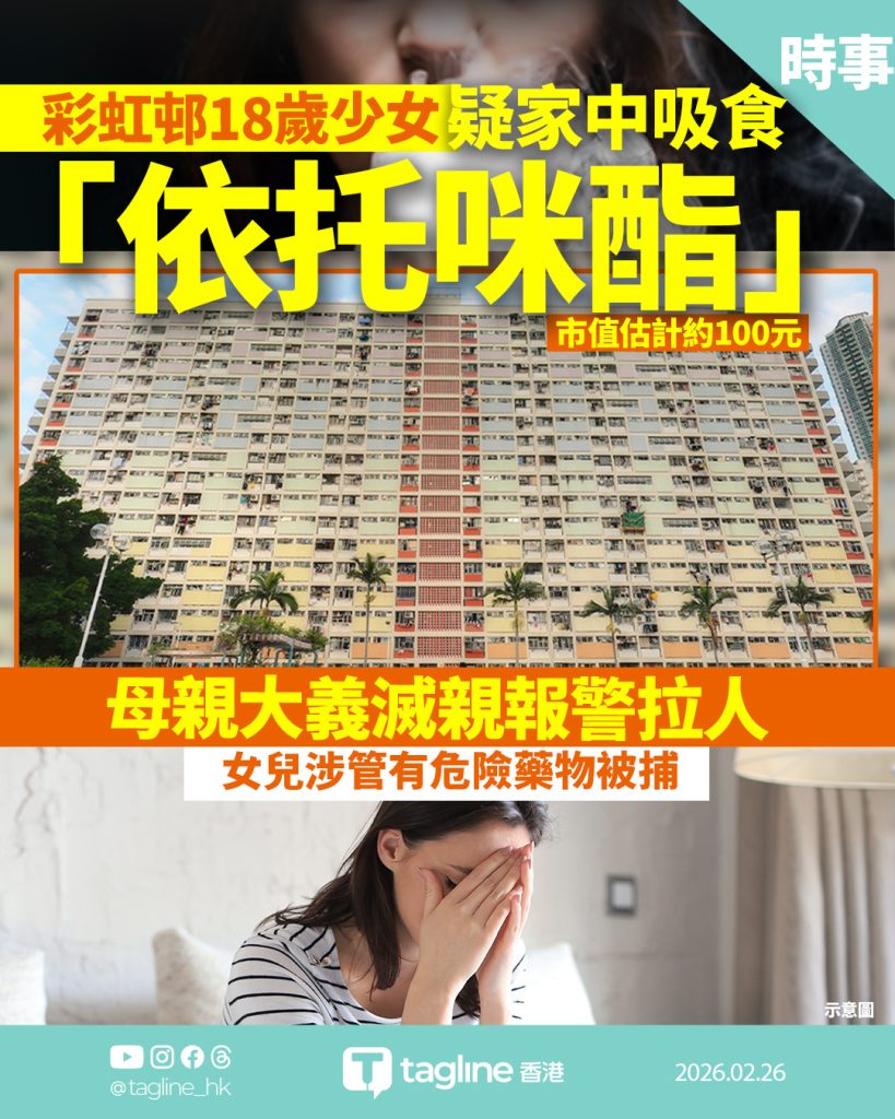 彩虹邨18歲女疑吸「太空油」神志不清 母大義滅親報警拘親生女