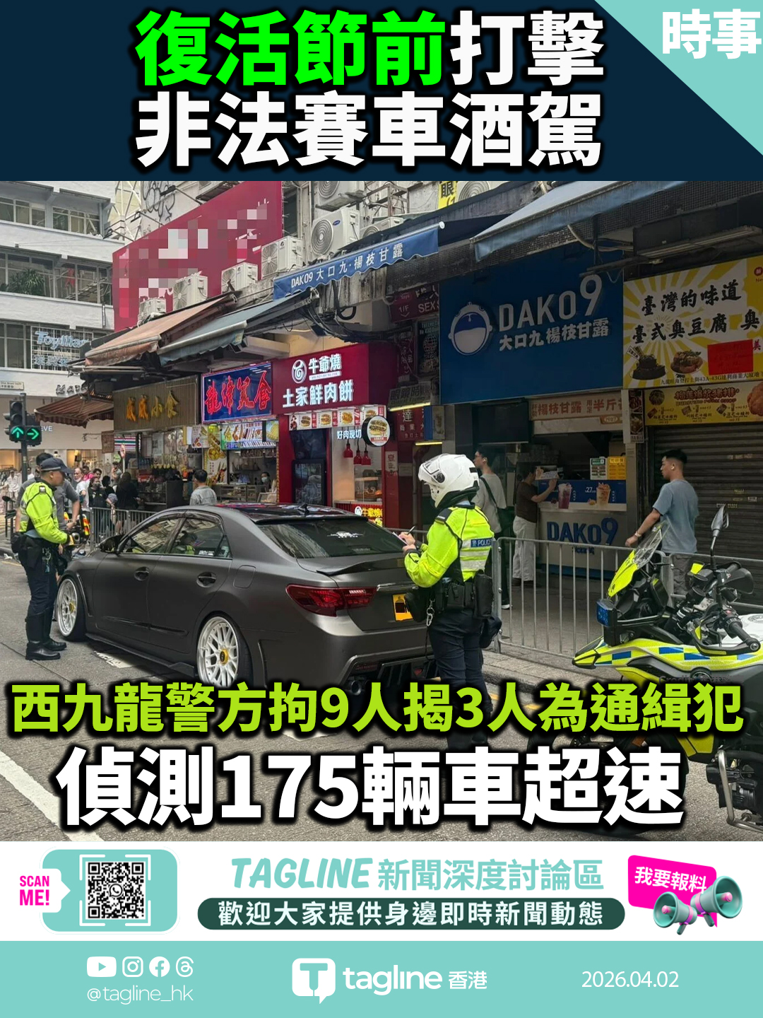 復活節前打擊非法賽車酒駕 西九龍警方拘9人揭3人為通緝犯 偵測175車超速