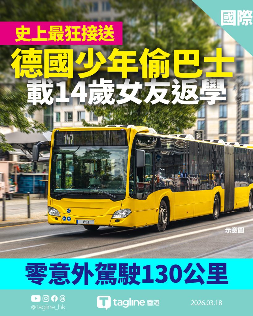 德國日前發生一宗偷車案,一名年僅 15 歲的少年為了送 14 歲的女友返學,竟然化身「巴士車長」,潛入車廠偷走一輛大型巴士並長途行駛約 130 公里。雖然少年最終被捕,但其純熟的駕駛技術與驚人的動機,引起當地網民熱烈討論。