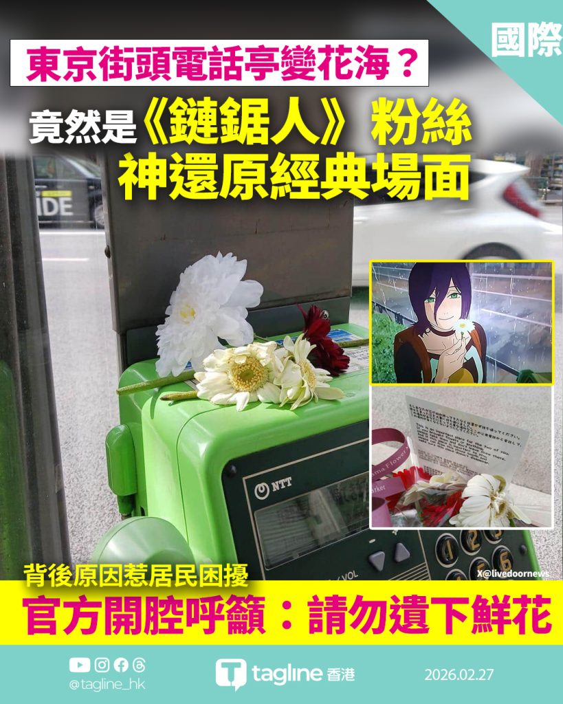 東京街頭電話亭變「花海」?《鏈鋸人》粉絲神還原經典場面 背後原因卻惹居民困擾
