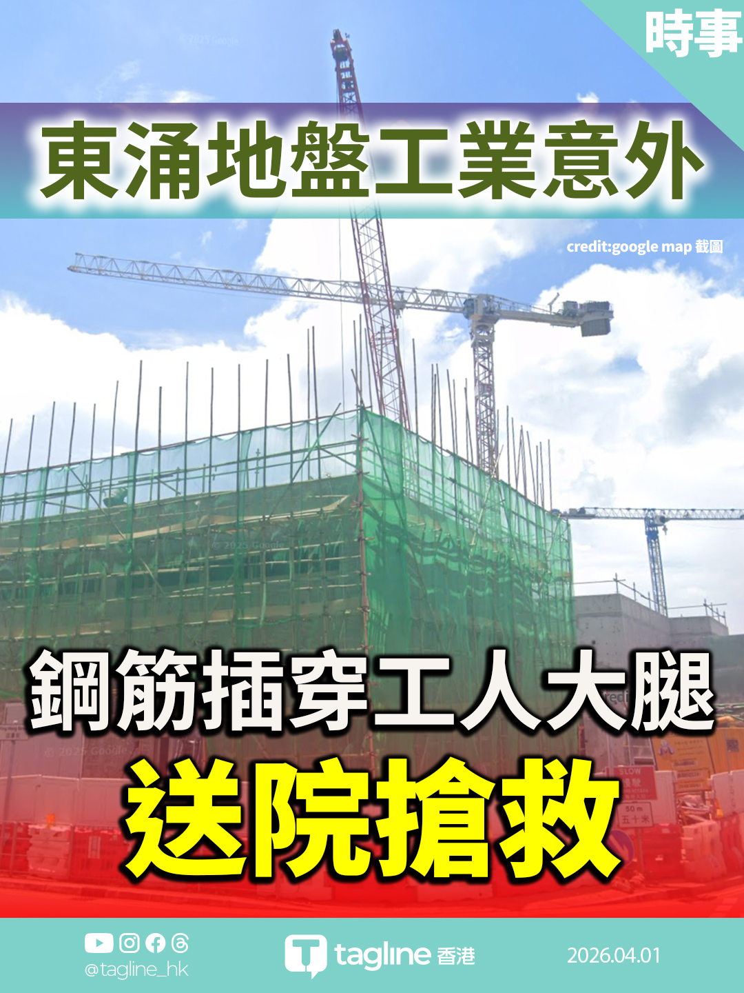 今日早上9時許,警方接獲報案,指一名30餘歲工人在工地遭鋼筋插穿左邊大腿。救援人員到場替傷者急救,並由救護車送往北大嶼山醫院,其後轉送到瑪嘉烈醫院搶救。現場消息稱,事主工作期間疑不慎踏空,遭鋼筋插穿大腿。警方正在現場調查事故,案件列作工業意外跟進。