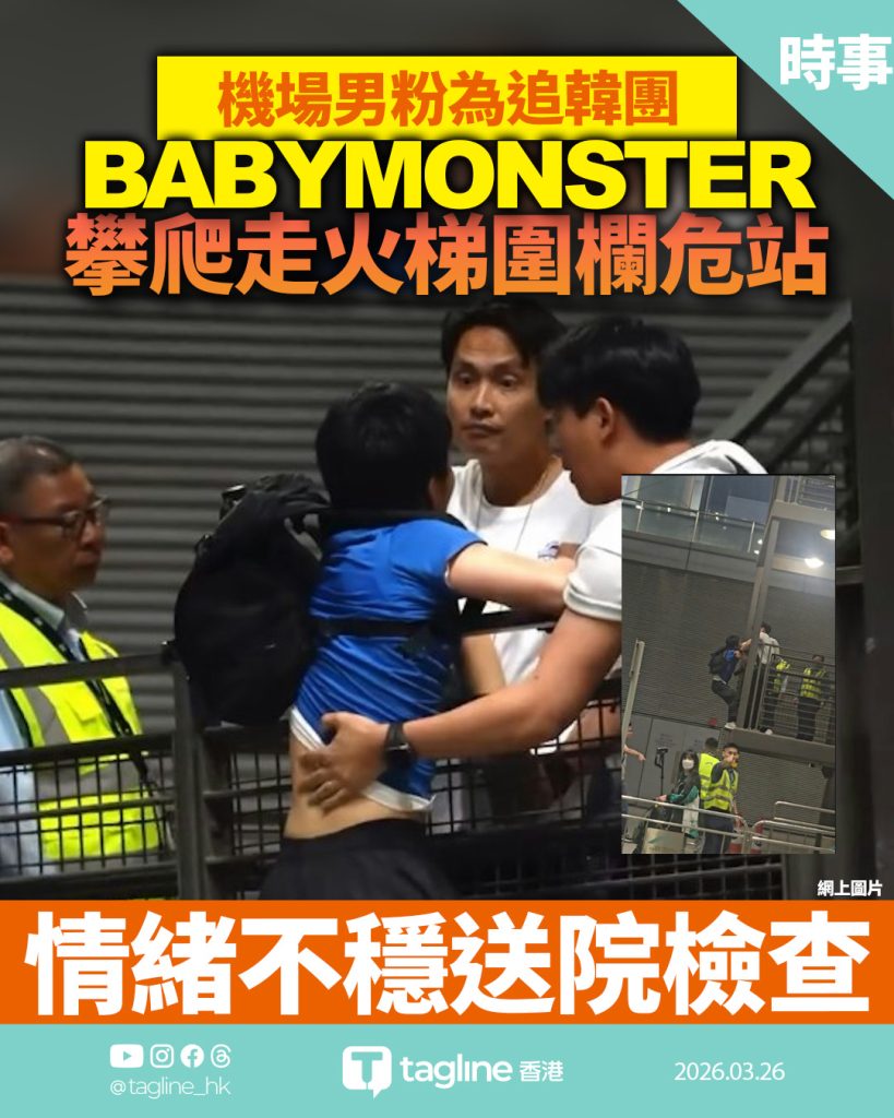機場男粉為追韓團BABYMONSTER 攀爬走火梯圍欄危站送院