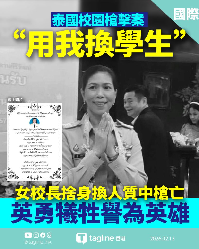 泰國宋卡府合艾市於2月11日發生震驚全國的校園槍擊案。一名19歲男疑犯闖入「帕通普拉坦基里瓦特學校」(Phatong Prathan Keeriwat School)並劫持師生,事件造成1死7傷。54歲的女校長薩西帕(Sasiphat Sinsamosorn)在對峙期間展現勇氣,主動向槍手提出以自己作為人質,換取一名受困學生獲釋,最終卻慘遭槍擊,於翌日凌晨傷重不治。