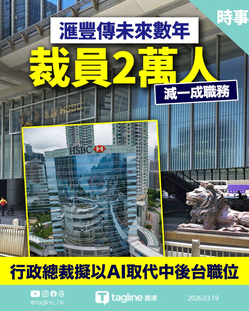 滙豐傳未來數年裁員2萬人 行政總裁擬以AI取代中後台職位