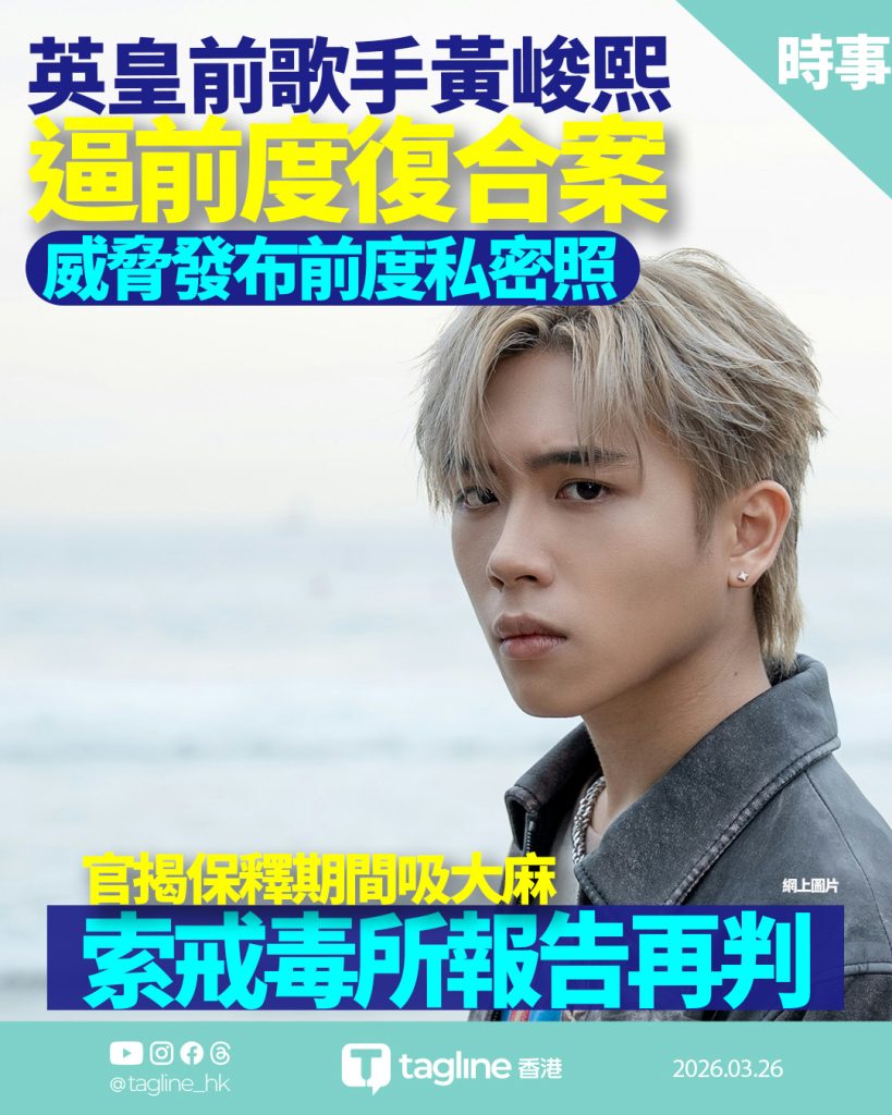 英皇前歌手黃峻𤋮威脅發布前度私照 保釋期吸大麻遭官質疑長期染毒 押後判刑索戒毒報告