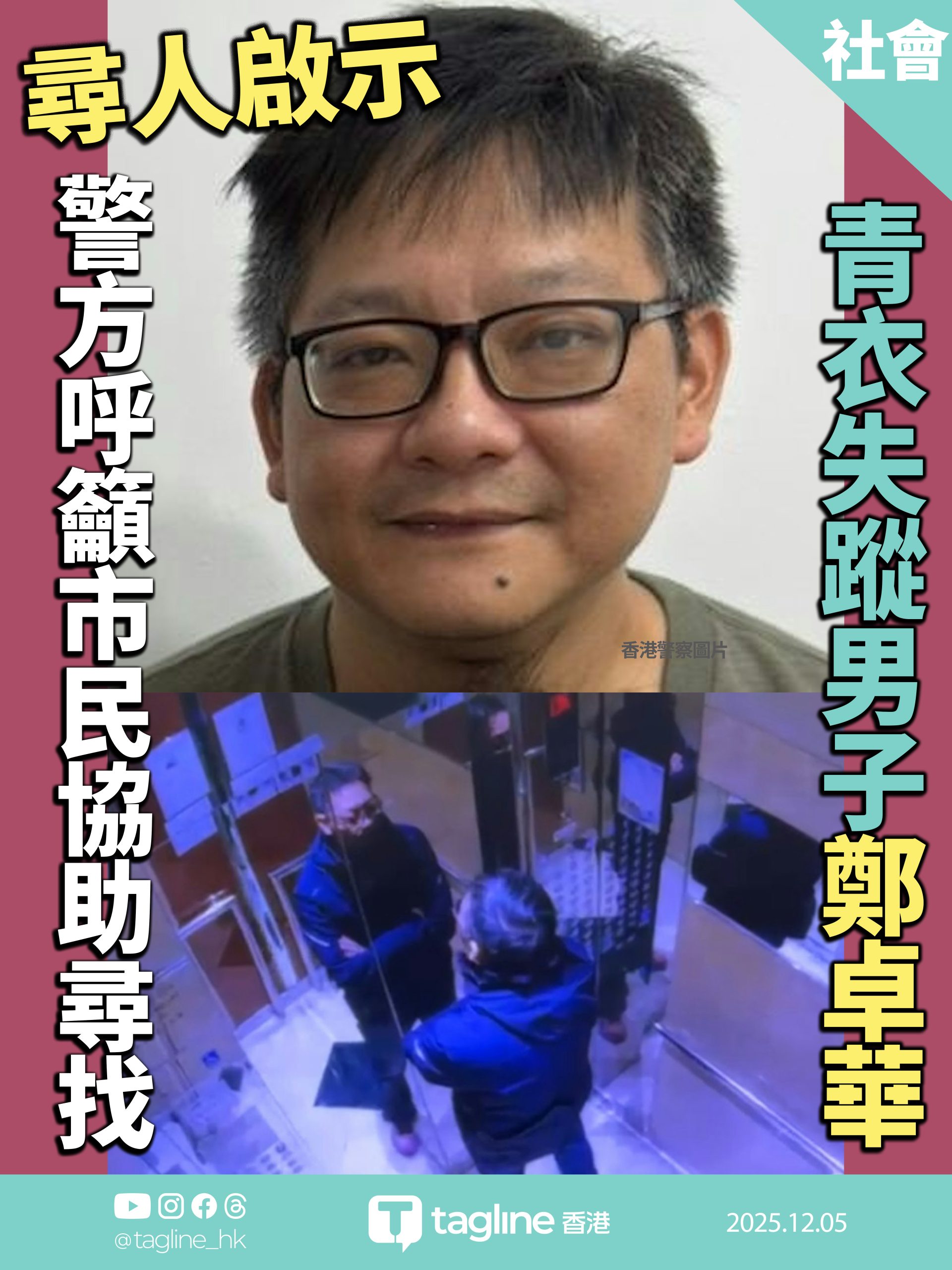 失蹤男子為鄭卓華,年49歲。他於11月27日晚上離開位於青衣路的住所後,便失去聯絡。其家人因多日未能與他取得聯繫,已於本周三(12月3日)向警方報案求助。
