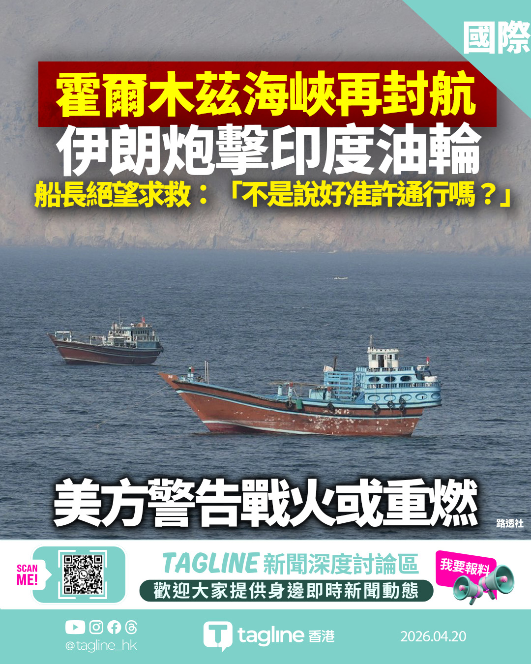 霍爾木茲海峽局勢再度陷於動盪。隨着以色列與黎巴嫩達成短期停火,伊朗外長阿拉格齊原於17日宣布重新開放海峽。然而,不滿美方「多次背棄承諾」,伊朗軍方翌日即撤回決定,宣布恢復嚴格管控。