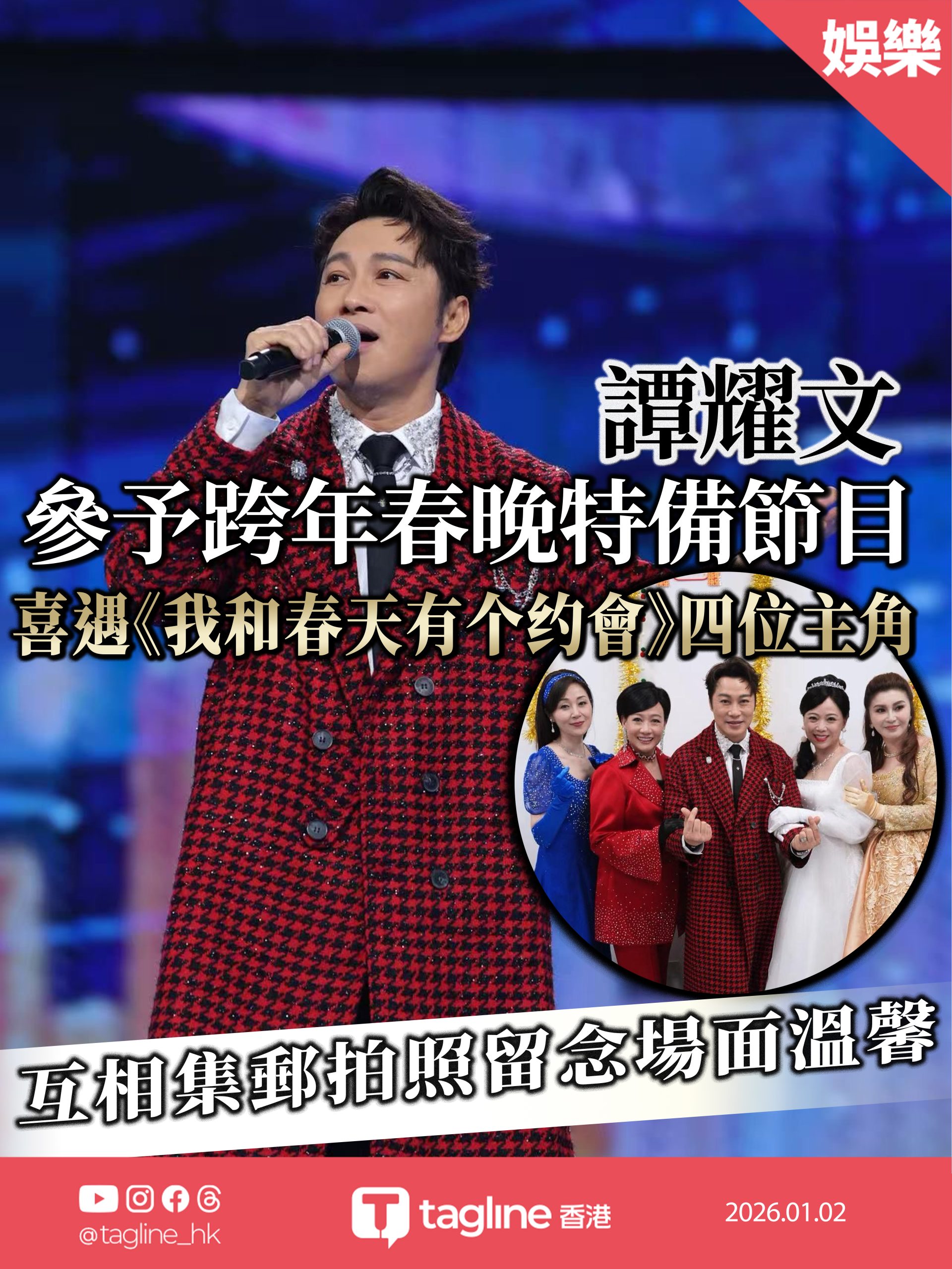 譚耀文參予跨年春晚特備節目喜遇《我和春天有个约會》四位主角:商天娥、鄧萃雯、萬绮雯和蔡曉儀互相集郵拍照留念 場面溫馨