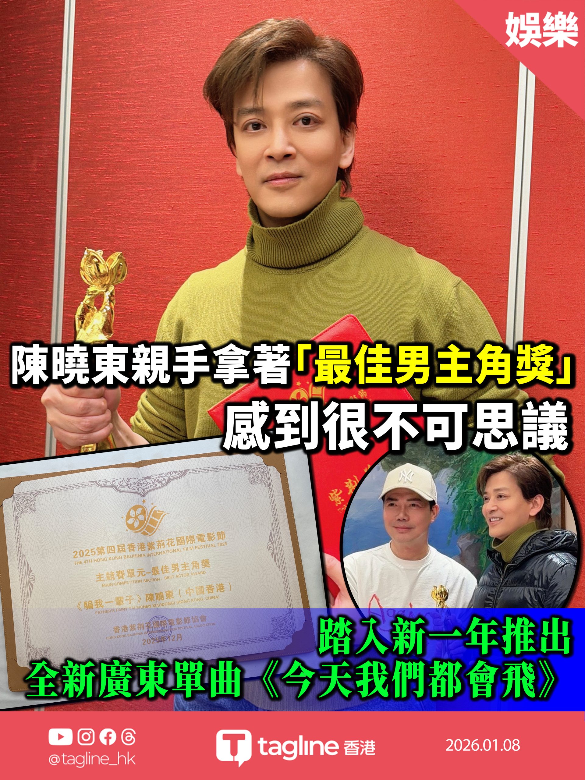 陳曉東親手拿著「最佳男主角獎」感到很不可思議踏入新一年推出全新廣東單曲《今天我們都會飛》