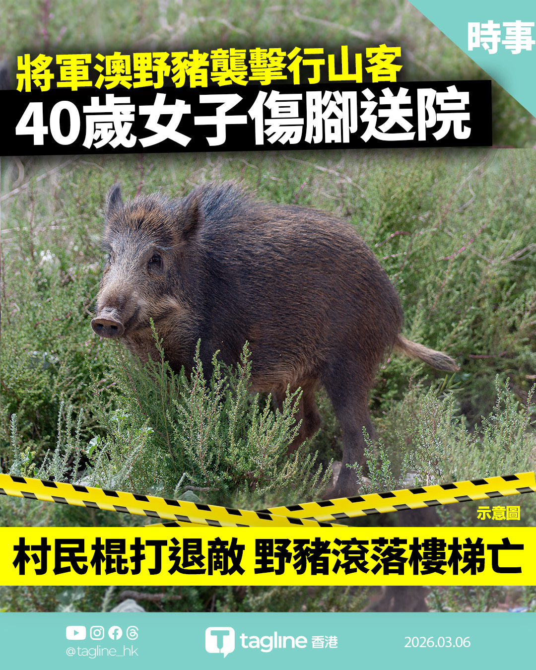 將軍澳野豬襲擊行山客 40歲女子傷腳送院 野豬被打跌斃命