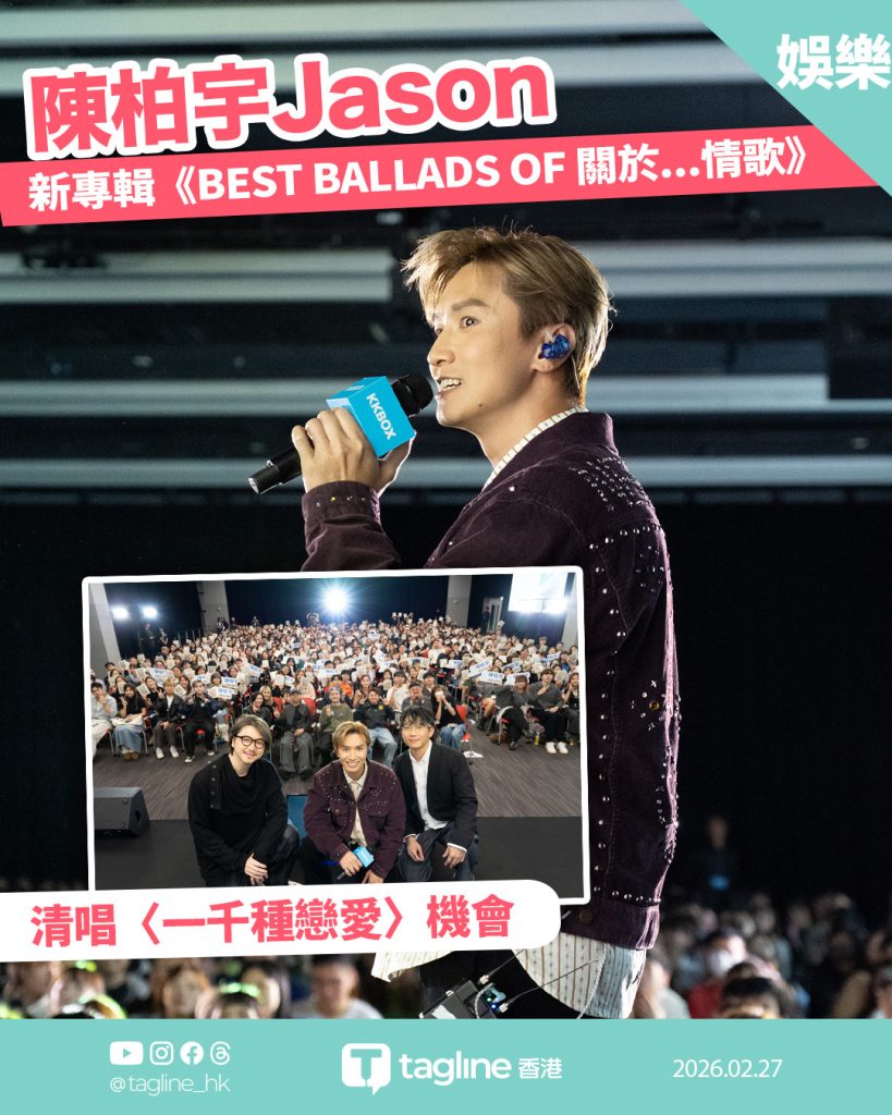 陳柏宇全新專輯《BEST BALLADS OF 關於…情歌》今日正式推出,十首作品以ballad曲風探討愛情的不同面貌。日前Jason出席新碟分享會,首度現場演繹新作〈過後〉,特意用上經典作品〈逸後〉的前奏作「前前奏」,為樂迷帶來驚喜。