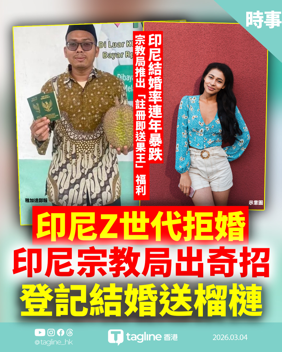 印尼Z世代拒婚?宗教局出奇制勝:註冊即送榴槤!社交平台掀熱議