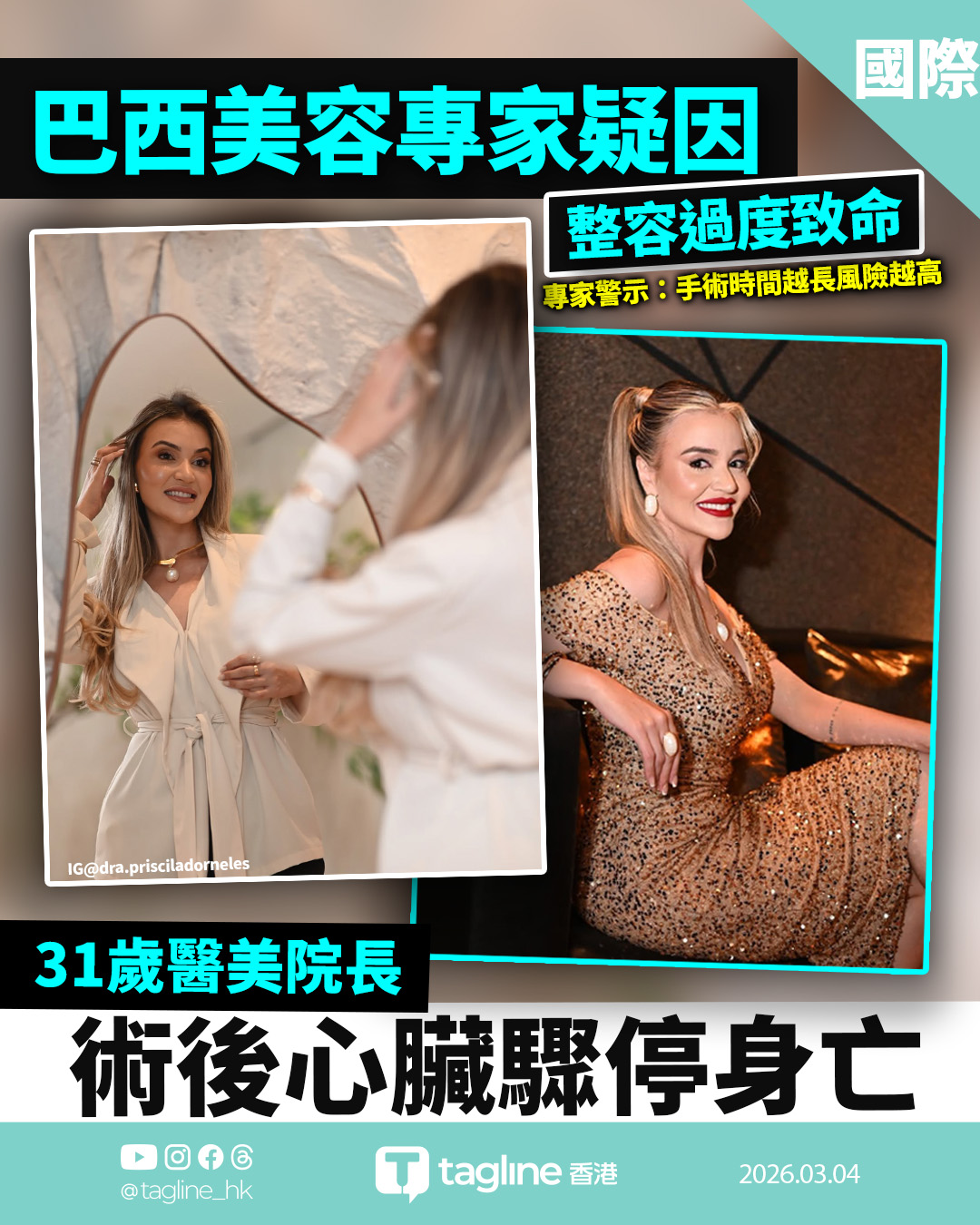 巴西美容專家疑因整容過度致命 同日抽脂隆胸致負荷過重